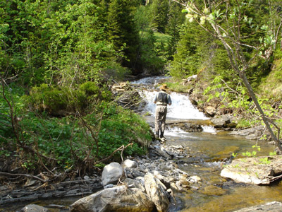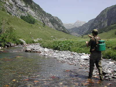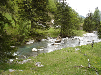The Gental Water (Gentalwasser) is far the most beautiful and productive creek in the Bernese Oberland. Flowing through green alpine meadows, the water has abundant food to make the wild alpine trout growing to far bigger sizes than in any other creek in the region. In contrast ot many other waters, we do not stock any bag size fish- all fish are naturally grown up and need many years to grow. During this time, the fish develop a lot of smartness, which will make fishing quite demanding. Fly fishing in the clear Gentalwasser is therefore one of the most exciting experiences a fly fisher man can have.