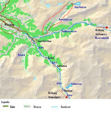 | The region of Meiringen with the Gental Water (Gentalwasser) | During the summertime, the water is low and as clear as gin |